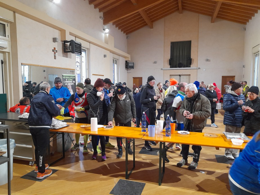 Ai nastri di partenza si sono presentati 448 i podisti. Parecchi in meno dello scorso anno quando erano stati 600. Il tempo instabile sicuramente ha impaurito gli indecisi. Peccato per loro perché si sono persi una bella marcia, ben organizzata e con un buon ristoro finale, che riscaldava letteralmente il corpo e lo spirito con i tortellini fumanti in brodo.