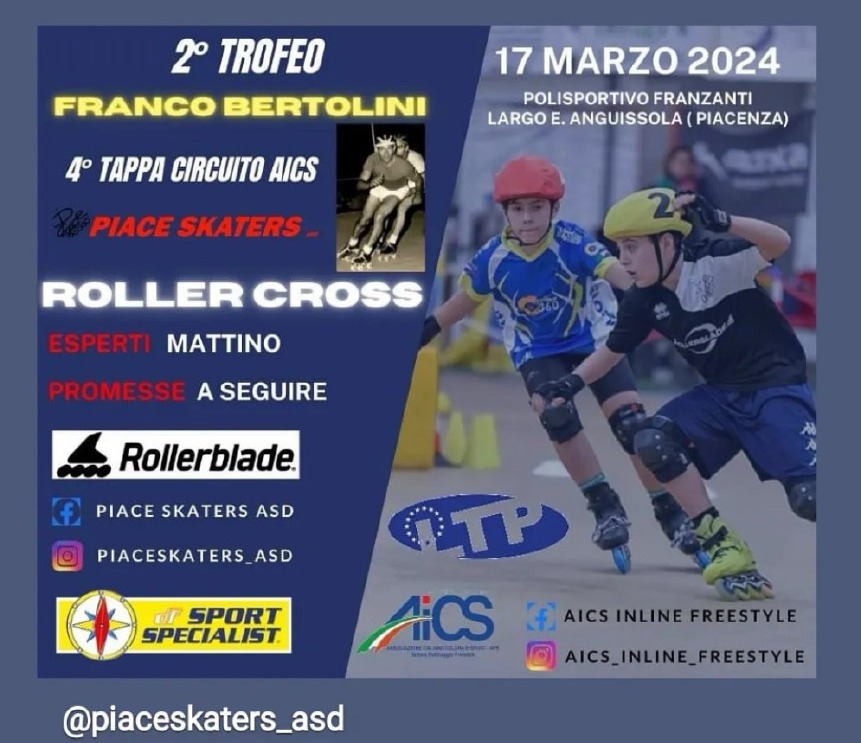 Prende il via la stagione del Freestyle Promozionale anche per i più piccoli atleti della Roller Power Acli di Crema. L’appuntamento è per domenica 17 marzo nel pomeriggio a Piacenza presso il Pala Franzanti per la quarta tappa della Aics Roller Cup 2024, valevole per il 2* Trofeo Franco Bertolini con la specialità del Roller-Cross.